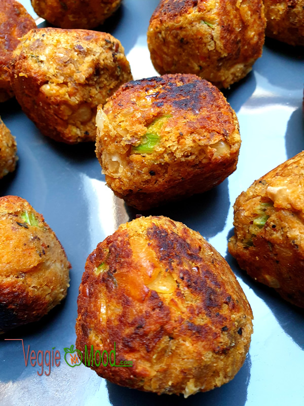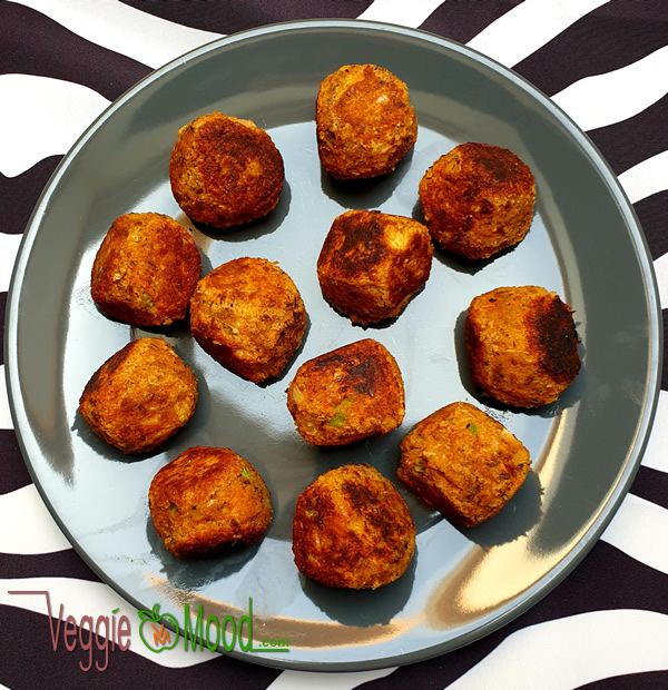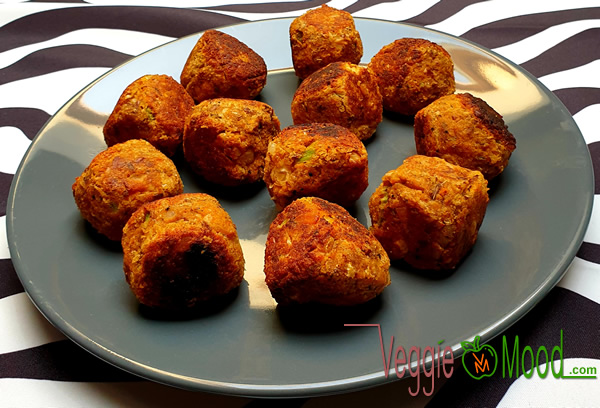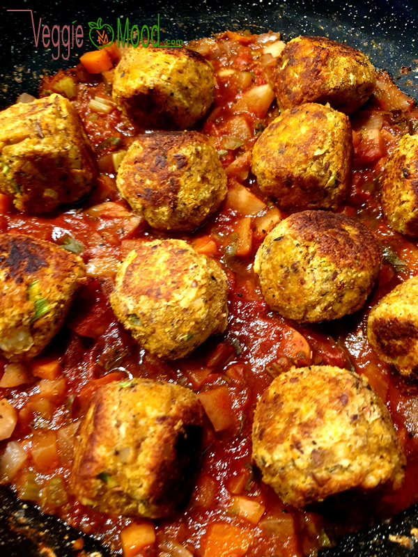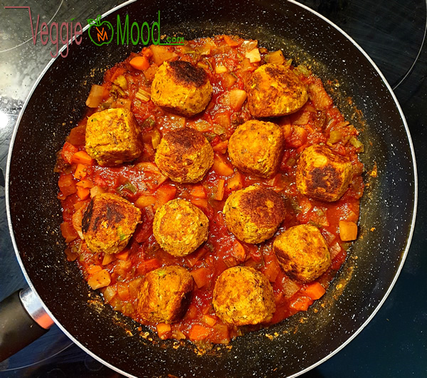 - Au moment de servir faire revenir les boulettes 10 minutes dans une poêle avec un peu d’huile de coco. Quand elles sont bien dorées les mélanger avec la sauce aux légumes. Servir au choix avec de riz, du quinoa, des pâtes, ….